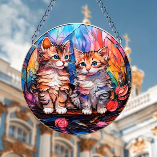Dekorace s motivem dvou barevných koťat – lapač slunce pro váš domov i zahradu